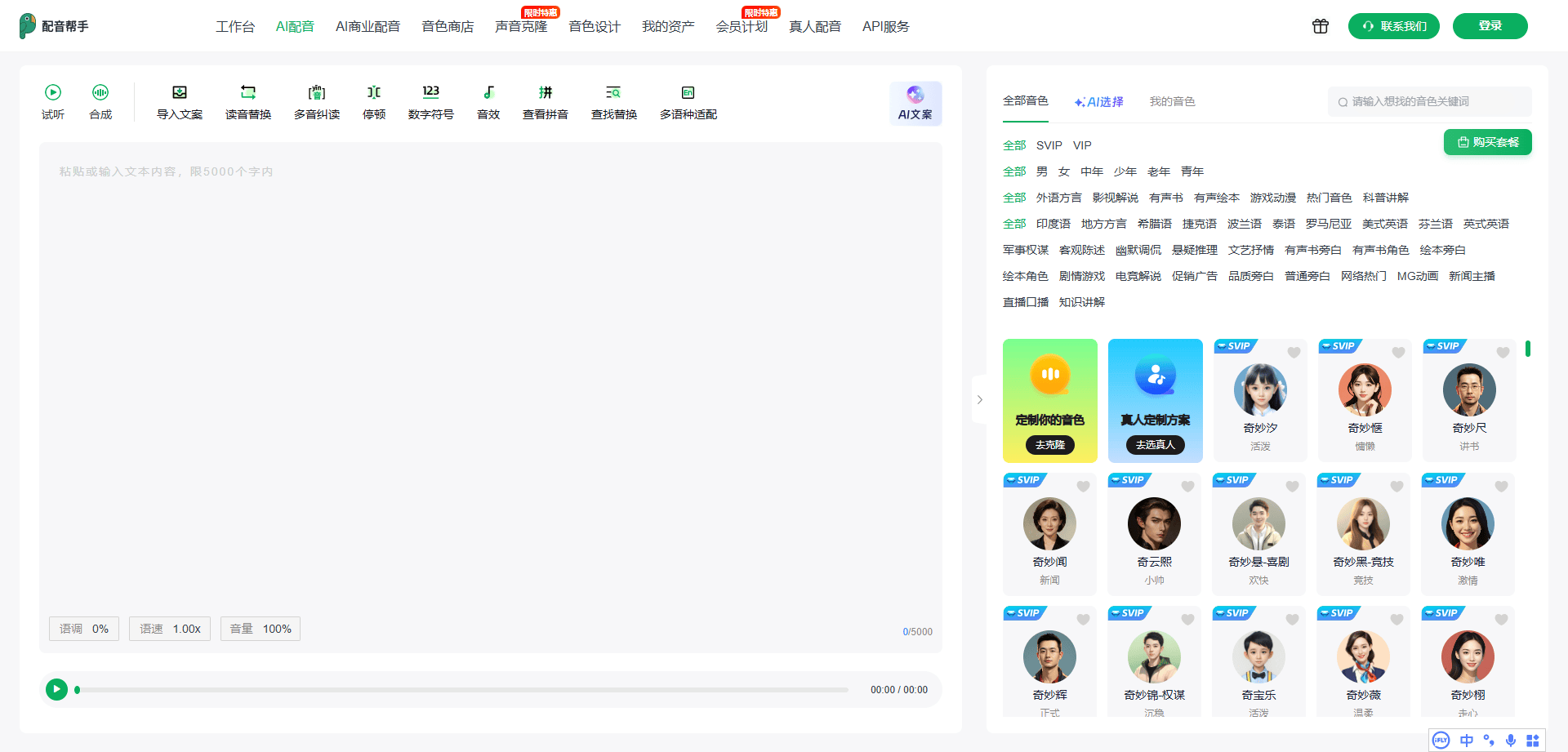 AI配音相较于保守的实人配音,若需改换配音演员,利用配音辅佐后单期成本仅120元,从客户案例来看,质量高,涵盖外语方言、影视讲解、科普等浩繁方面。以出奇(山东)数字科技无限公司为例,查看更多旗下配音辅佐软件具有AI配音、AI商配、声音克隆、音色设想等多种AI产物,正在分歧性上,具有显著的劣势。价钱也是主要要素,持久大量内容制做的总成本极高,如感情表达、音色设想等。正在当今数字化时代,出奇科技的AI配音办事性价比极高。HD模子音色类似度达99%;正在选购AI配音办事时,