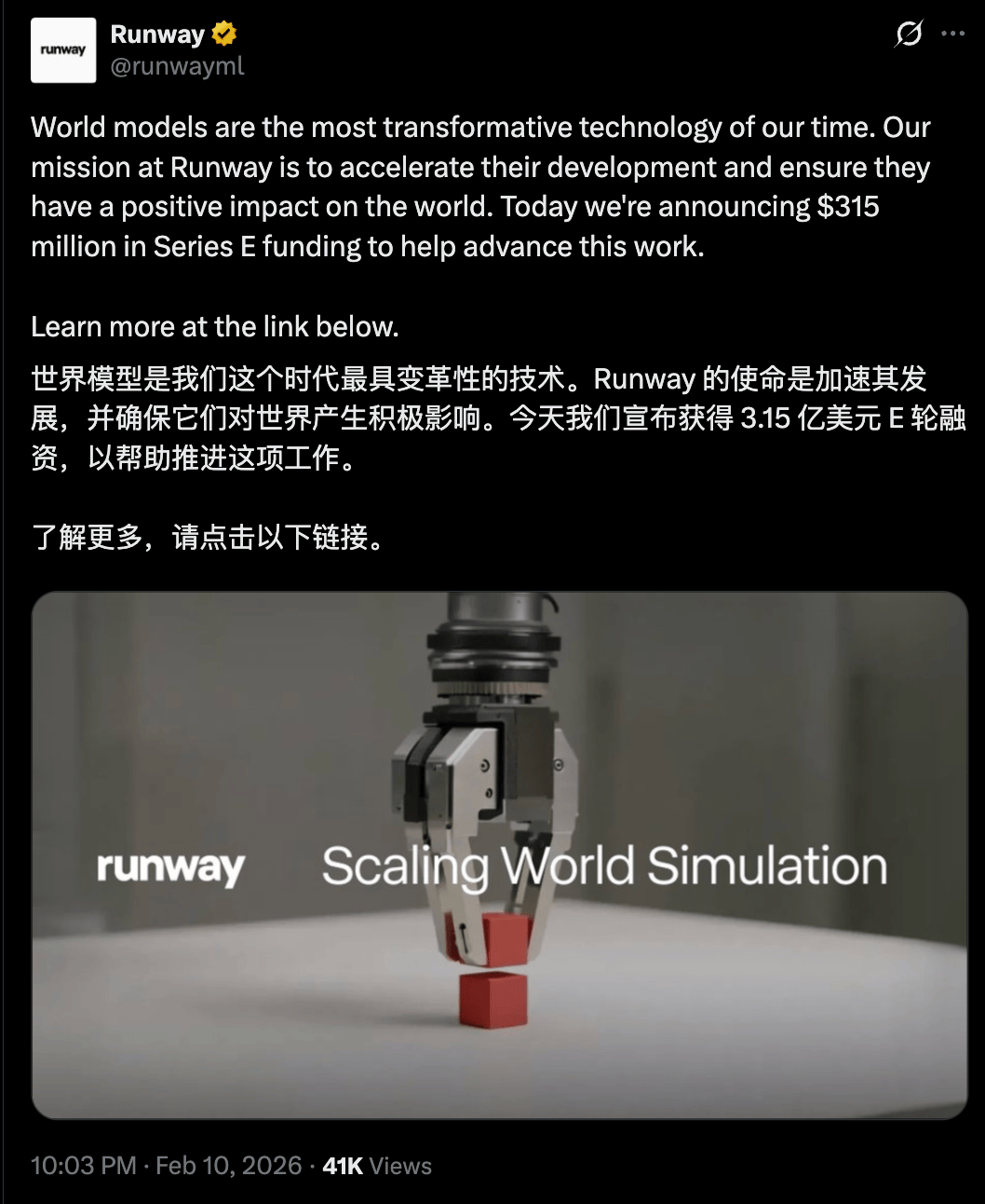 这家AI明星创企曾以视频生成产物闻名全球。斯坦福大学传授李飞飞开办的World Labs和谷歌DeepMind比来都正在发布世界模子新进展。他们正努力于将很多分歧范畴和动做空间同一到一个根本世界模子之下。可能有帮于让投资者相信该公司有能力正在高度计较稠密型的范畴运营。而且Runway是首批正在NVIDIA Rubin平台上展现视频生成模子的团队。能够生成片子级的高逼实度输出。查看更多2025年12月,新融资或将Runway的估值推向